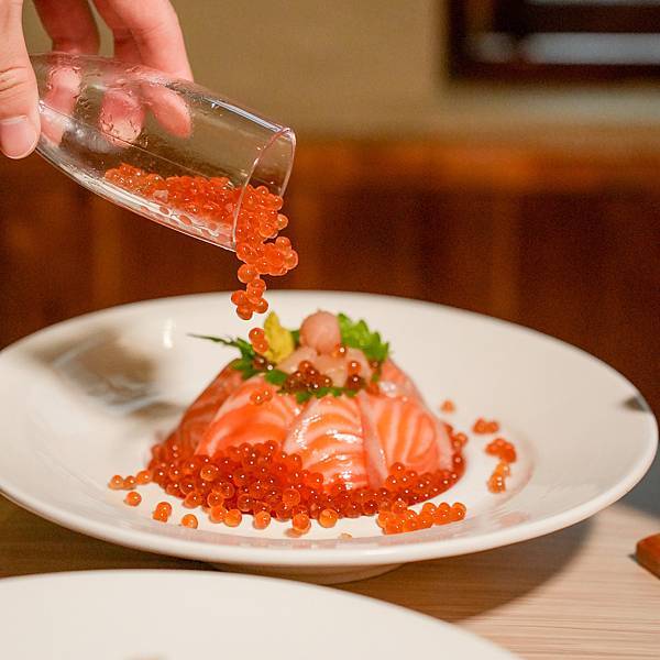 倒入鮭魚卵瀑布瞬間讓人驚呼連連!