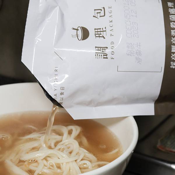 第三步驟:隔水加熱燙過的料理包倒入麵中
